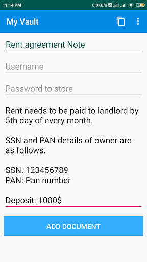 My Vault app lets you store your passwords with all data inside the app. You can store multiple usernames and passwords or any sensitive data you want to keep as safe. You can also attach sensitive files as an attachment inside the app. By Default, My Vault app encrypts all the data using the AES-256 encryption algorithm.