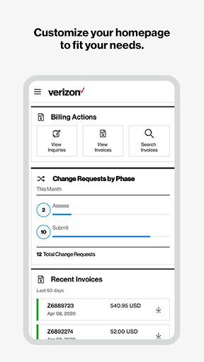 The My Verizon for Enterprise app lets you: