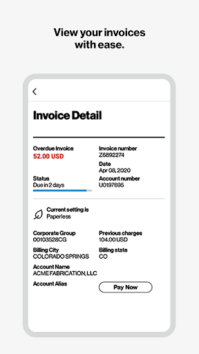 • Manage your invoices with paperless settings or view current charges with just a tap.