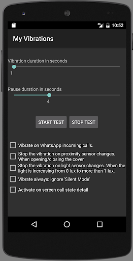 My Vibrations is an easy service that allow user to define, vibration lenght and pause, when receiving a phone call.