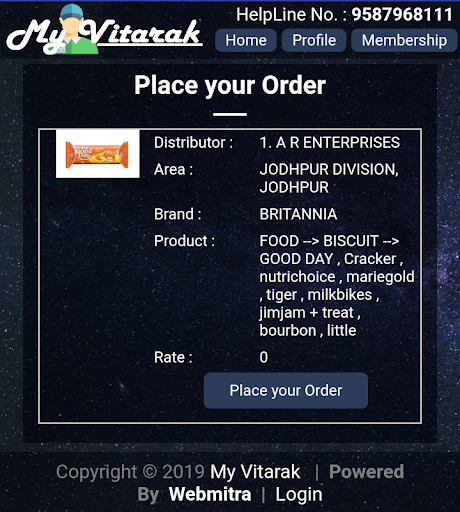 Purpose of this website is to get benifit to all distributors, retailers and consumers to place order by connecting through local wendors and supply directly to consumers as well in local areas.
