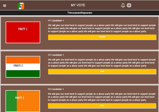 Available parties like Communist Party of India Marxist (CPIM), Communist Party of India (CPI), Indian National Congress (INC), Bhrathiya Janatha Party (BJP), Muslim League, Janatha Dal (JD), BDJS in different group like LDF, UDF, NDA etc.