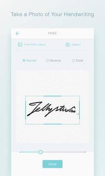 Another way to take a good advantage of My Watermarks feature is to make your own handwriting into a photo signature. Pick up a blank paper, write your name, and take a photo of the handwriting with My Watermarks Camera, keep the Normal mode. You can easily apply the signature to any photo on your device. You can change the color of it in the color panel.