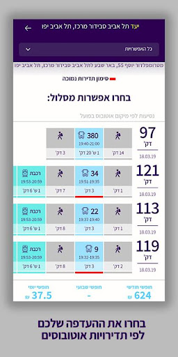 האפליקציה הייחודית בישראל לתחבורה ציבורית אשר תדריך אתכם באינטואיטביות מקסימאלית, אשר תציע לכם את כל האפשרויות הרלוונטיות עבורכם גם בתכנון מסלול וגם בחיי היום-יום במגוון תחומים אשר מותאמים אליכם.