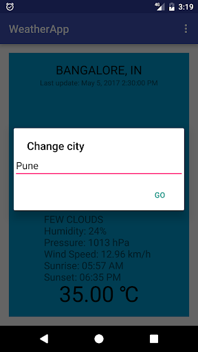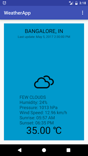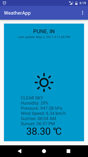 You can find a current weather of your city with Humidity, Pressure, Wind Speed, Sunrise and Sunset time from this app. This app is very easy to use and user friendly. You can find all weather information in one click.