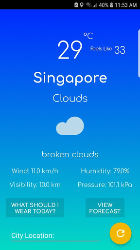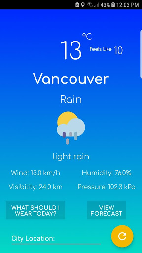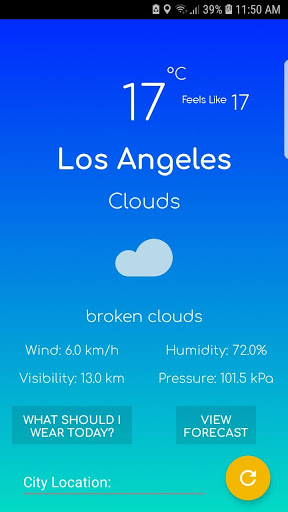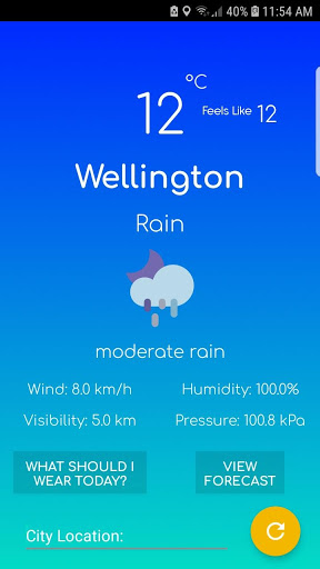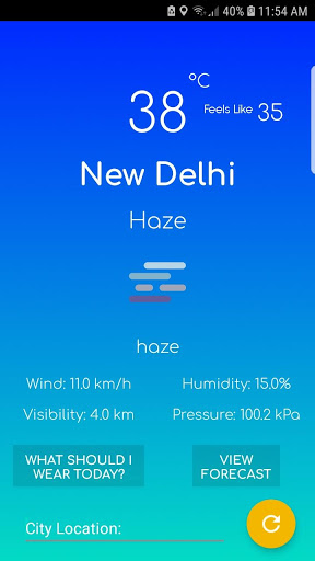 ○ Local Weather: Identifies your current location and automatically fetches the weather data for you as soon as you open the app on your phone