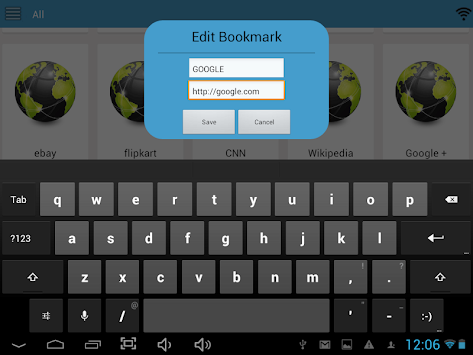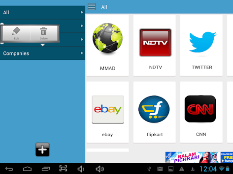 Now you can go to favorite websites in one click through creating your own app. Features: • Create your favorite Websites • Create Category for your websites • Supports 2.2, 2.3, 3.0, 4.0, 4.1.2