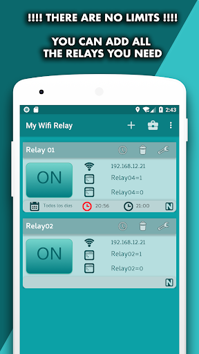Thanks to this App you can control the relays connected to your arduino or connected to module ESP8266 or ESP32 or similar. You can add as many relays as you want from the same module or different modules. The code is included in the application to be able to load it into the Arduino IDE and the connection scheme between the ESP and the relays.