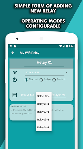 The app also receives feedback from the relays, atomically positioning ON / OFF.