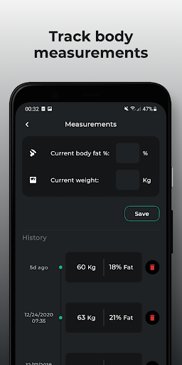 ● Body measurements - add your body metrics over time and see how you gain mass or lose weight