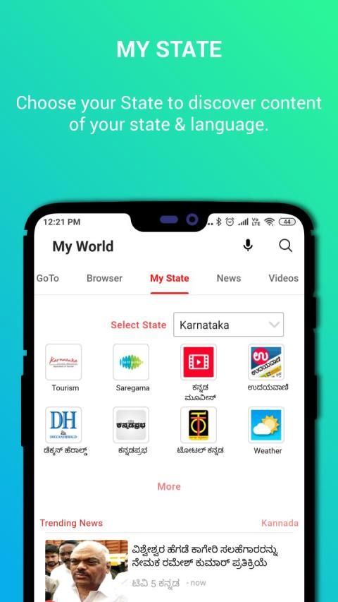 * Discover content of your own state and language. Just select your state and you can view all the popular sites and news of the state.