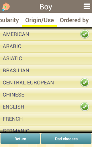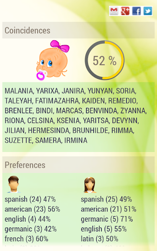 Once selected girl or boy, we will obtain a list of names where both Mom and Dad separately choose their favourites.