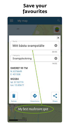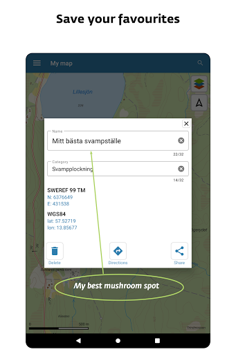 - Share marked places and links with friends across the app or with https://minkarta.lantmateriet.se