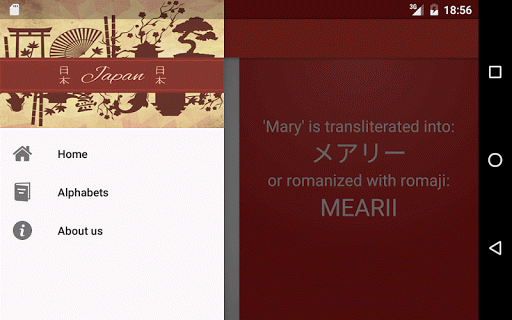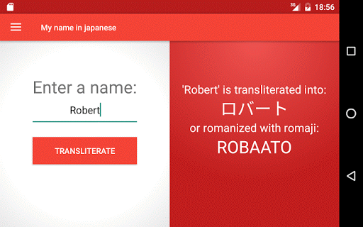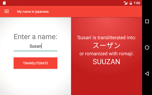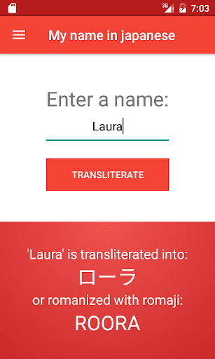 Thanks to this application you will get to know how your name is written in Japanese. You will see your name in katakana alphabet, the one used to write non-Japanese names, and a transcription to romaji, that is, using the Latin alphabet, but adapting your name to the Japanese phonemes. And remember, you can copy the name clicking in it.