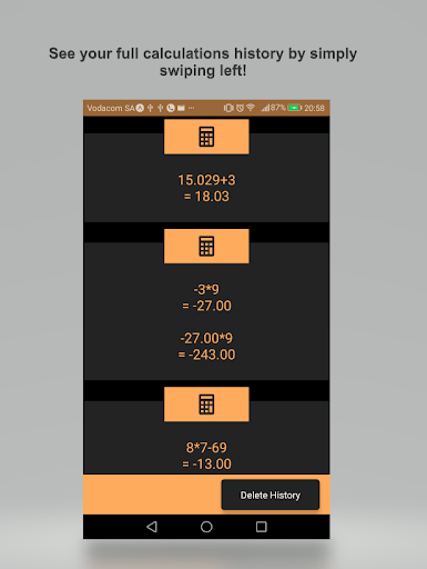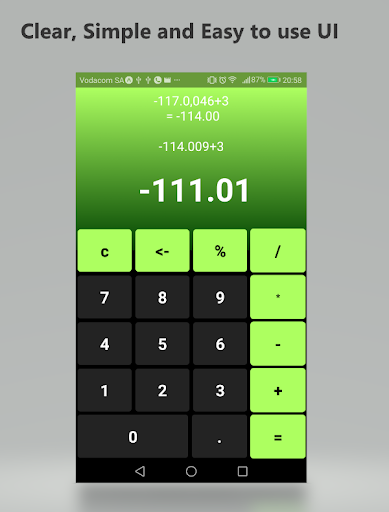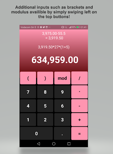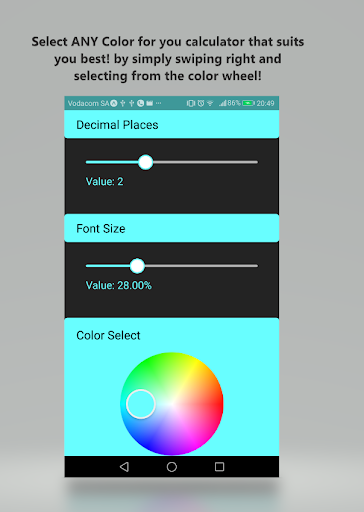 Simple Calculator that allows you to be able to customize how you want your calculator to look to best suit you and your style. Simply swipe right on the calculator to customize your look.