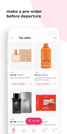 Before traveling, you can choose from over 10,000 products, find out about current special offers and the most popular products. The application will help you to choose exclusive products to meet your every need.📲