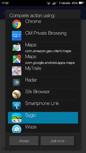 , you can easily access waypoints in the Google Earth / Google Map formats (KML or KMZ), saved on the phone, and navigate to it via any of the installed navigational applications, such as Google Maps, Waze, Sygic, etc.