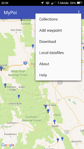 To add a new KML or KMZ file, copy it to your phone by USB cable, send as an email attachment, download from the web site or Google Drive, etc. You also can save waypoints in the application, either your current position or by entering coordinates in any of the most popular formats, such as different variations of decimal or DMS (degrees minutes seconds). After this, you will be able to view it on the map and navigate to any point using your preferable navigation system.