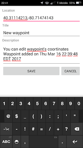 - Waypoints' import from the phone storage or other application, such as Google Drive