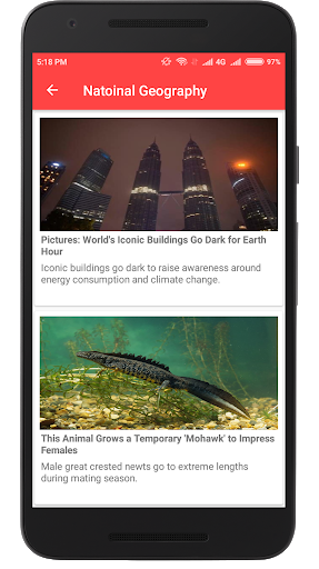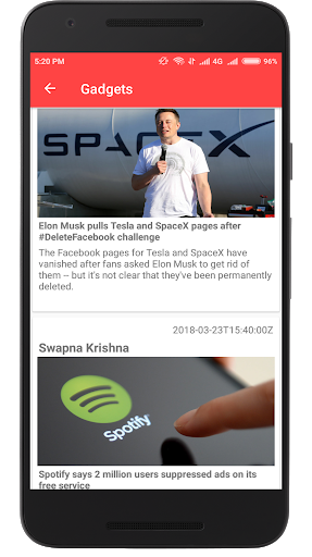 News Menu has grid style with different categories like Metro, Sports, Entertainment,