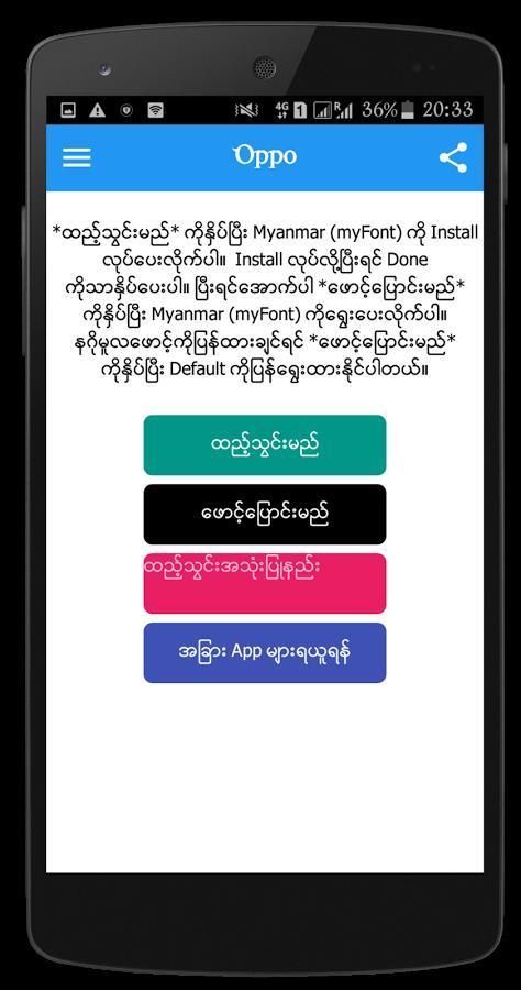 Here are some news for you to learn more about one of the best android apps. 20,000+ users downloaded Myanmar Font Changer latest version on 9Apps for free every week! This app has been greatly welcomed in India. This hot app was released on 2017-07-15. I believe you’ll enjoy it after use it.