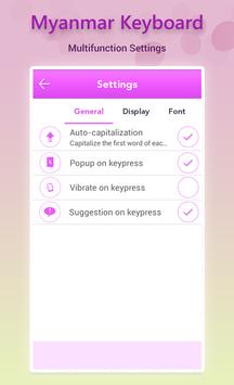 Setting options used for apply setting in your Myanmar keyboard with various options.like General Setting,Display Setting,Font Setting , Sound Setting etc.