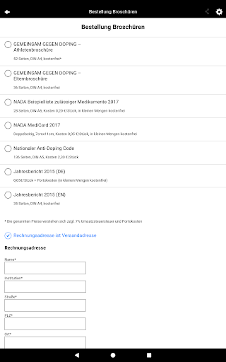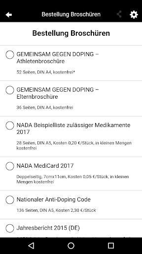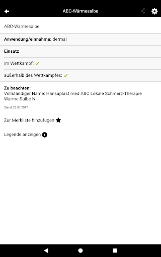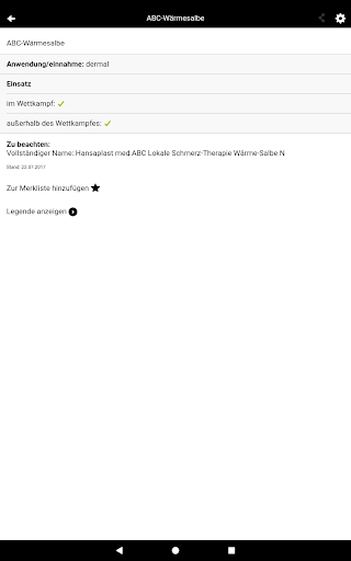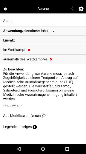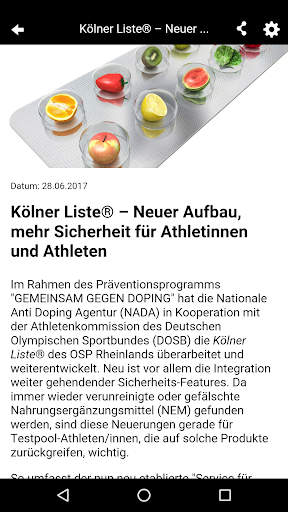 Ang opisyal na app ng National Anti Doping Agency Germany (NADA) ay nag-aalok ng mga kapaki-pakinabang na tool para sa mga atleta.Ang query sa gamot na Naded ay maaari ring gumamit ng offline anumang oras.Kaya ang iyong mabilis na impormasyon ay nakuha tungkol sa doping kaugnayan ng droga.Ang paksa ng pandagdag sa pandiyeta ay tumatanggap din ng aktibong suporta.Ang listahan ng Cologne ay nagbibigay ng isang makabuluhang karagdagan sa isang nakalarawan paghawak ng pandiyeta supplements.
