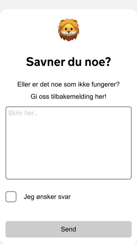 Noe du savner? Er noe helt på trynet? Si i fra til oss i appen. Vi kan synes og mene mye, men det er deg, du som bruker appen og fordelene, vi gjerne vil høre fra. Du er med på å bestemme hvordan den skal bli.