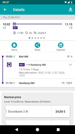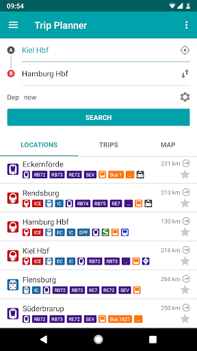 An individual journey planner for all trains and buses within Schleswig-Holstein: you can choose to search by your current location, a particular address, or the nearest bus or train station. Our journey planner gives you the fastest connections, the exact distance you need to travel, footpaths, platform number and transfer time.
