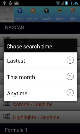 This is an unofficial NASCAR news reader Help you read all car racing news and info, including NASCAR, F1, IndyCar, GRANDAM, LeMansALMS, ARCA, NHRA, World of Outlaws.1. Car racing NEWS, including NASCAR, F1, IndyCar..etc.2. Car racing schedule including NASCAR, F1, IndyCar..etc 3. Car racing Result, including NASCAR, F1, IndyCar..etc4. Car racing Standings, including NASCAR, F1, IndyCar..etc5. NASCAR blog 6. Car racing website including NASCAR, F1, IndyCar..etc.7. search and play car racing video, including general car racing, F1, NASCAR SprintNationwideTruck. You need YoutuBe player on device.Enjoy reading car racing news, including NASCAR, F1, IndyCar, GRANDAM, LeMansALMS, ARCA, NHRA, World of Outlaws news.