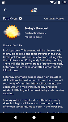 Get the latest Southwest Florida news and weather wherever you go with the redesigned NBC2 News App. Read and watch local and national news, get personalized alerts about breaking news and other stories you want to know about, and check the NBC2 First Alert Storm Team's latest forecast on your phone or tablet.