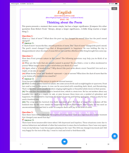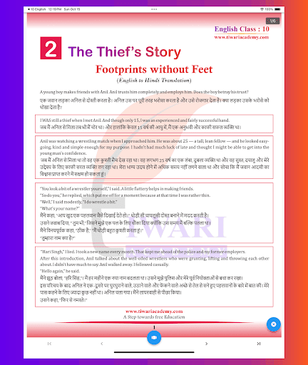 Note: Earlier there were 11 chapters in English Reader and 10 chapters in Supplementary Reader. As per the rationalised NCERT Books published for academic session 2023-24, there are only 9 chapters in English Reader and 9 chapters in Supplementary Reader Footprints without Feet. Two chapters from the book First Flight and one chapter from supplementary book is deleted from the syllabus. This app of class 10 English Question Answers solutions with English to Hindi translation contains only those chapters which are in curriculum for 2023-24 exams.