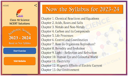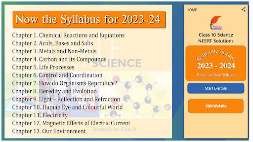 Note: Earlier there were 16 chapters in class 10 science syllabus but as per new NCERT textbooks issued for academic year 2023-24, there are only 13 chapters in 10th science curriculum. That is why, three chapters (which are out of syllabus) removed from the app. Apart from this, the topics are delete in rest of the chapters also. So, it is advice to follow new textbooks only for the preparation of 2023-24 exams. For any educational help, feel free to contact us.