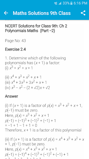 App contains answers of all the Maths chapters included in the CBSE Class 9 NCERT Book.
