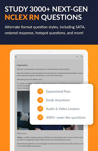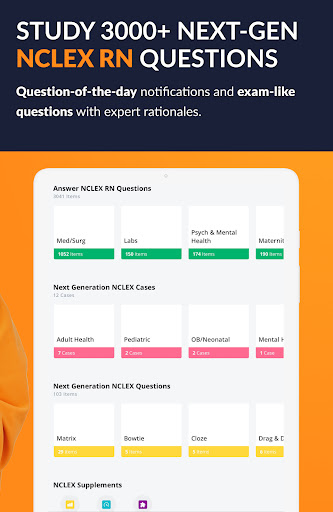 Exam-like questions with expert rationales teach you how to think logically on the NCLEX RN. Study from the app or online, anytime. We’ve included all NCLEX question formats such as ordered response, hotspot, SATA, and new Next Gen item types.