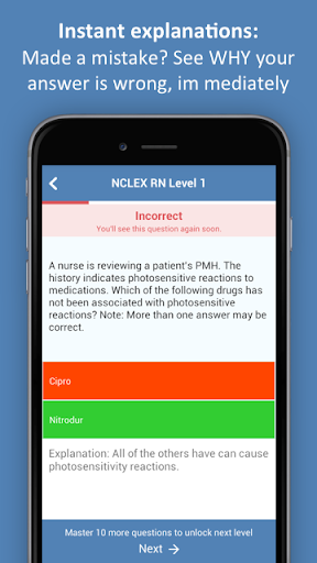 - Detailed explanations: When you make a mistake, the app tells you right away if your answer is wrong and why. You understand and remember every wrong answer.