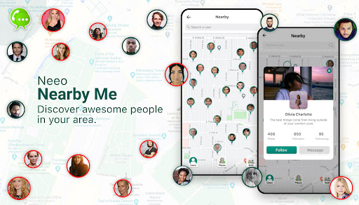 With Neeo nearby feature find the awesome people in your area. The easiest way to find and make new friends in your area with just a single click. It can display users near you on the map. Choose the one you like, tap on the profile icon to learn more, and start a conversation.