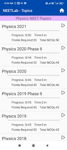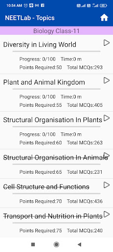 1. Topic-wise Tests: Each subject has 24 topics. For Physics, Chemistry and Biology it contains 72 topics containing 120-300 MCQ questions each depending on the weight-age of topic in medical entrance examinations.
