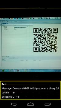 Once your NFC message is composed, the editor automagically generates a binary QR code - scanned by this app. Then simply touch up an NFC tag to write - couldn't be more simple.