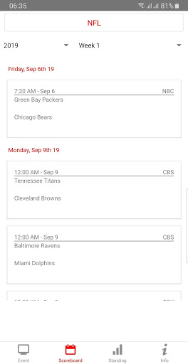 - Never miss a game! You can set an alarm and be reminded to tune in.
