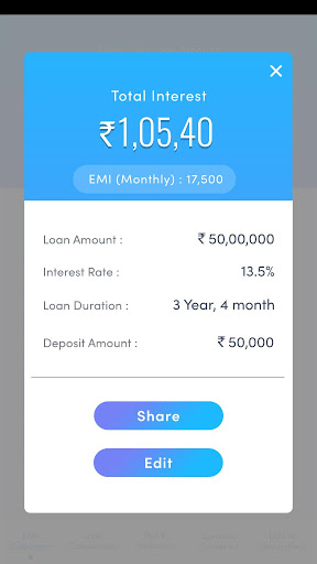 NG EMI Calculator is simple calculation tool that helps to calculate EMI on various types of loan. Anyone can use this application to calculate their EMI (Equated Monthly Installment) and plan their loan repayment in effective way. This app is the advanced Financial Tool and helps to make the calculation of loan and comparison between different loans easy. This smart and handy app is one stop solution to your financial calculation .
