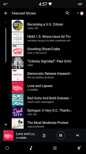 * Easy access to the full catalog of NPR and local station shows and podcasts