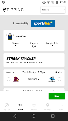 • Official NRL Tipping app