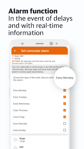 If you regularly travel by train, you no doubt like to have the latest information about an upcoming journey. The alarm function sends you push notifications with the details of delays, cancellations and service disruptions. Our system can send you information about disruptions for a specific service or for a number of trains using the same route. To ensure that you can plan your journey properly, you will receive messages until the disruption is resolved. You can click the pause button to stop the alarm function.