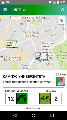 for bicycles, for each of the stations in Novi Sad. If you allow access to your current location (GPS), you receive information on the nearest bike rental station and the