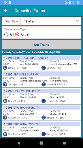 Nice app but dont showing trains between stations, in all types and cancelled trains & rescheduled trains are not showing