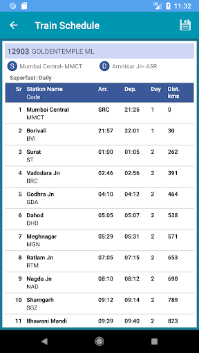 • Train Schedule with save feature