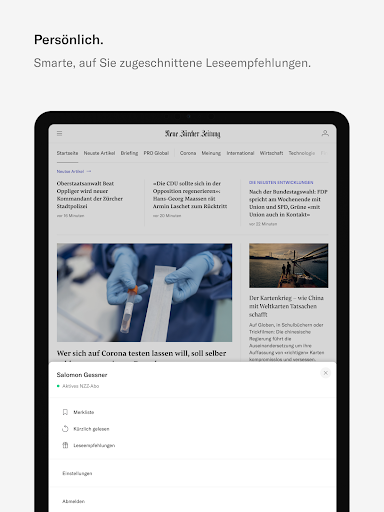 Nach der Registrierung in der NZZ-App können Sie zudem zahlreiche Funktionen zusätzlich nutzen, zum Beispiel:
