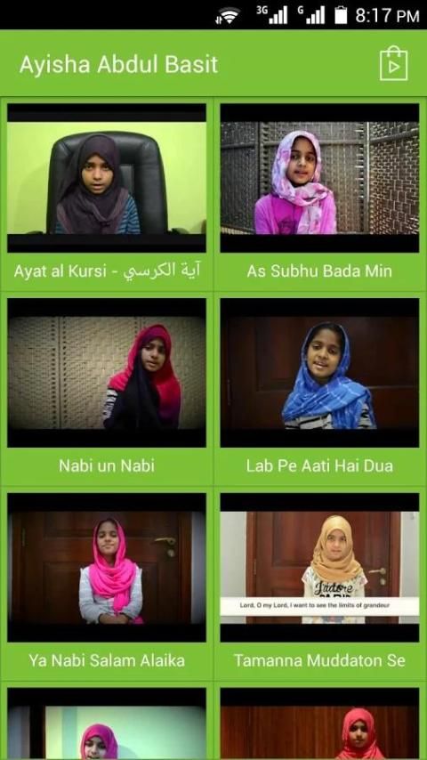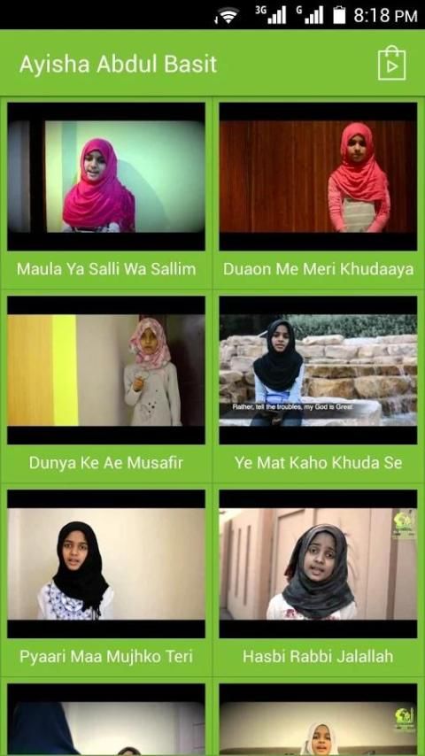 In this application you can watch all the Nasheeds, Hamds and Naats by Ayisha Abdul Basith.