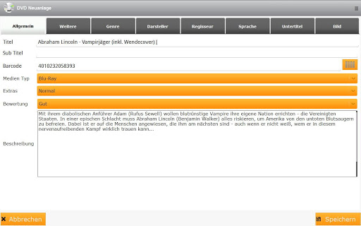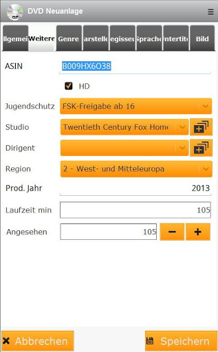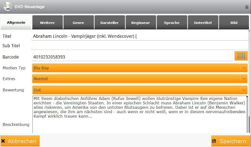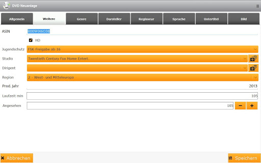 • Enhanced search function, also genre, type (DVD or Blue Ray), Extras (metal, aso.) and the supported languages of the DVD or Blu-Ray.
